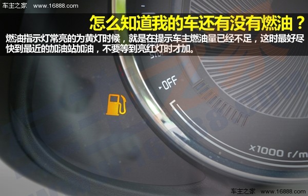 有部分新手司机对于车辆的不熟悉,车辆开到没油了都不清楚,其实仪表盘在车辆燃油快耗尽的时候会给车主发出提示,图标很形象,就是一个加油机的形状,一般在仪表盘的左右下角。车辆进行自检时,这个指示灯则会点亮一小段时间,随后熄火。