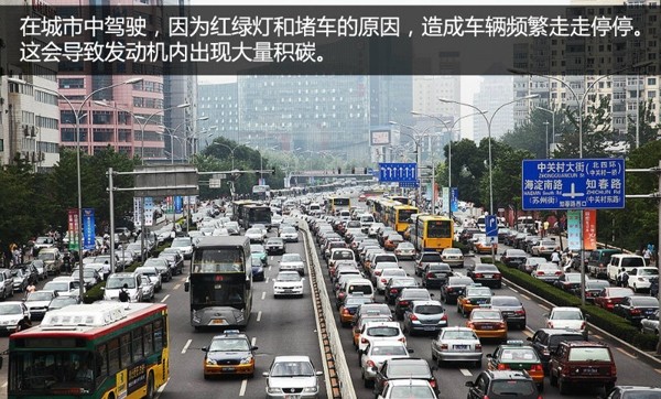 而像在城市驾驶中,红绿灯和堵车导致汽车长时间怠速或者走走停停,经常在低于8km的短距离内行驶,开车上班,但到单位车还没热。这些就属于非一般的“耗损性驾驶”。这种“耗损性驾驶”会导致发动机内出现大量积碳,从而影响到发动机的寿命。