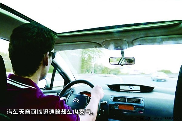 使用天窗除雾是一种快捷除雾的方法,如果行车过程中将车的侧窗紧闭,就会增大车内外温差,前风挡玻璃容易形成雾气。这时只需要打开车顶天窗至后翘通风位置,可轻易消除前风挡的雾气。