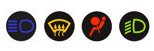 ④绿色指示灯为功能性灯光,如示宽灯、转向灯和近光灯等。