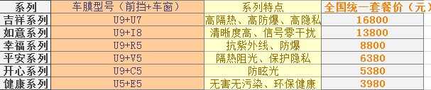 欧帕斯汽车膜分为吉祥、如意、幸福、平安、开心、健康六大系列。