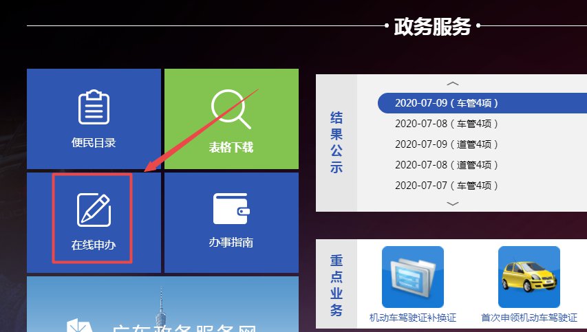 1、进入深圳交警官网,在政务服务页面点击“在线申办”
