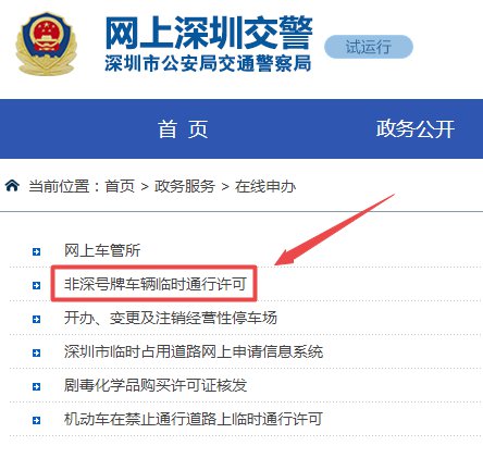2、进入之后,点击“非深号牌车辆临时通行许可”