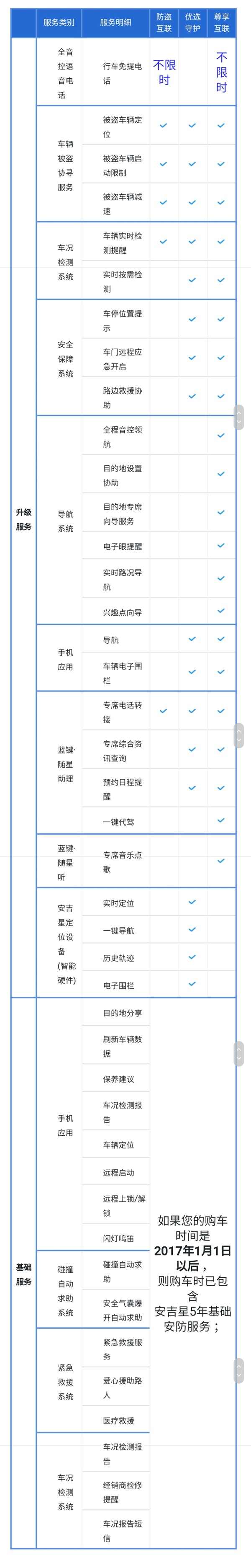 目前安吉星共有三个套餐可选,即防盗互联套餐、优选守护套餐和尊享互联套餐。