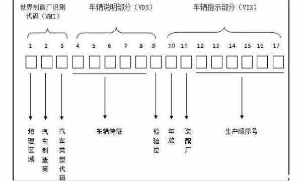 第二位数字代表汽车制造商;第三位数字代表车系代码,不同厂商有不同的解释;第四至八位数字代表车辆的特征;第九位数字代表检验代码,只能是数字0~9或x。