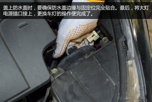 第五步:重新盖上防水盖,将灯泡电源插上,更换操作便完成了。