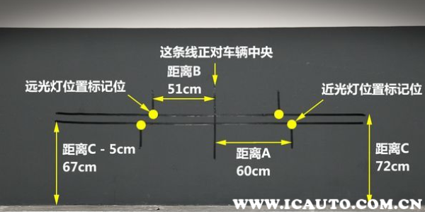 2,测量地面到大灯中心的 高度 ,并测量两个大灯之间的距离。