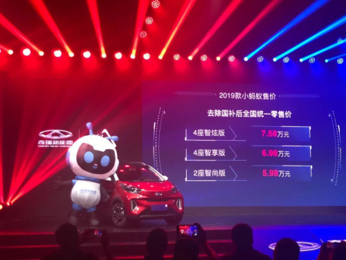 近日,备受关注的奇瑞新能源2019款小蚂蚁终于在北京正式上市。作为细分市场的销售冠军车型,小蚂蚁自2017年第一代产品问世以来,历经多次改款升级,已赢得了众多消费者的信赖和良好的用户口碑。而本次全新上市的2019款小蚂蚁,更是在颜值、配置、智能驾驶等方面都进行了全面的升级进化,再次用领跑同级的表现刷新“纯电小车的全新标杆”,瞬间成为行业的焦点。本次新车共推出4 座智炫版、4 座智享版以及2 座智尚...