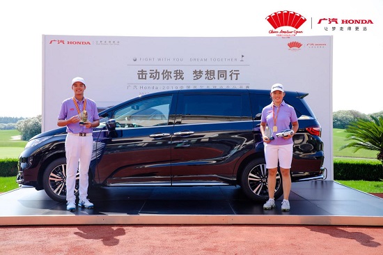 北京时间6月28日,广汽Honda·2019中国业余公开赛年度第四站上海站完美收官。男子组赛况胶着龙争虎斗,最终来自迪拜的16岁少年徐子昂以总成绩209杆(67-74-68,-7),力压2018年北京站冠军赵浩钧,以1杆优势惊险夺冠;女子组来自云南的16岁姑娘殷若宁在三轮比拼中均是一枝独秀,,以总成绩200杆(66-66-68,-16)的巨大优势问鼎冠军。图片说明:男女冠军赛事由中国高尔夫球协会主...