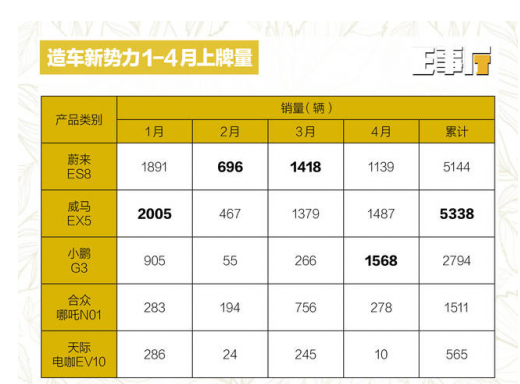 就在前不久,32.8万的国产特斯拉开启了预售。尽管价格仍有下探空间,但也给市场带来了不小的影响。自主品牌正积极布局产品线,应对特斯拉的强势入场。而产品线单一、资金有限、口碑尚未建立完毕的造车新势力们现在的情况又是如何呢?随着各家车企纷纷交出5月的销售成绩单,搜狐汽车·E电园将为您盘点分析1-5月造车新势力们的销量情况。通过销量排名,我们选取了蔚来、威马、小鹏、合众、天际等五家车企进行分析。由于一些...