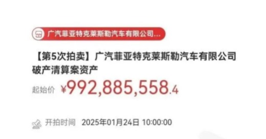 1月10日,广汽菲克管理人发布公告称,将对广汽菲克长沙工厂开启第5次拍卖,起拍价按上一次流拍价的90%即9.92亿元,保证金1亿元。开拍时间为2025年1月24日10时起至2025年1月25日10时止。官方在公告中表示,此次拍卖主要是为保障债权人合法权益,尽快实现资产变现。值得一提的是这个起拍价与前一次相比减少了1.1亿元,与最早的一次起拍价 19.15亿元相比,起拍价降至腰斩。回顾广汽...