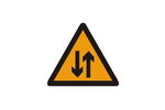 双向行驶的道路上,采用天然的或人工的隔离措施,把上下行交通完全分离,由于某种原因(施工、桥、隧道)形成无隔离的双向车道时,须设置此标志,用于提醒车辆驾驶人注意会车。