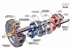 Quattro全时四轮驱动的核心是Torsen中央差速器,他比任何电子控制技术更快的调节前后轴力量的分配。EDL在必要时,将多余的动力传送到车轮上,增强抓地性。当车轮空转或者没有与地面接触时,这些浪费的驱动力就被输送到可以受力的车轮上。