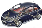 承载式车身是汽车底盘结构的一种,其车身负载通过悬架装置传给车轮。承载式车身具有质量小、高度低,装配容易,高速行驶稳定性好等优点,目前大部分轿车采用这种车身结构。