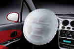 主/副驾驶座安全气囊,一般设置在车内前方(正副驾驶位)。装有安全气囊系统的容器外部都印有(Supplemental Inflatable Restraint System,简称SRS)的字样,直译成中文为“辅助可充气约束系统”。旨在减轻乘员的伤害程度,当发生碰撞事故时,避免乘员发生二次碰撞,或车辆发生翻滚等危险情况下被抛离座位。