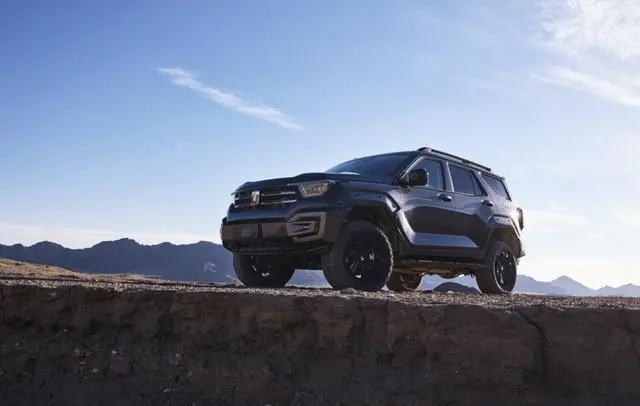 车身方面:新车采用了非承载式的车身结构,配有半露式外挂备胎和能量翼机械尾灯使得车辆的越野风格气息拉满。腰线采用是分段式设计,突出车身侧面的层次感,尾部车配备有小尺寸的扰流板以及高位刹车灯,科技感满满。身尺寸方面,新车长宽高分别为4985/1960/1905毫米,轴距为2850毫米。
