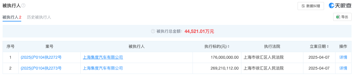此外,极越汽车还面临多起官司。4月7日,极越汽车关联公司上海集度汽车有限公司新增两则被执行信息,执行标的为4.45亿元,执行法院为上海市徐汇区人民法院,涉及金融借款合同纠纷案件。在此之前的3月12日,因特许经营合同纠纷,上海集度汽车有限公司等3家公司被武汉东湖新技术开发区人民法院立案。