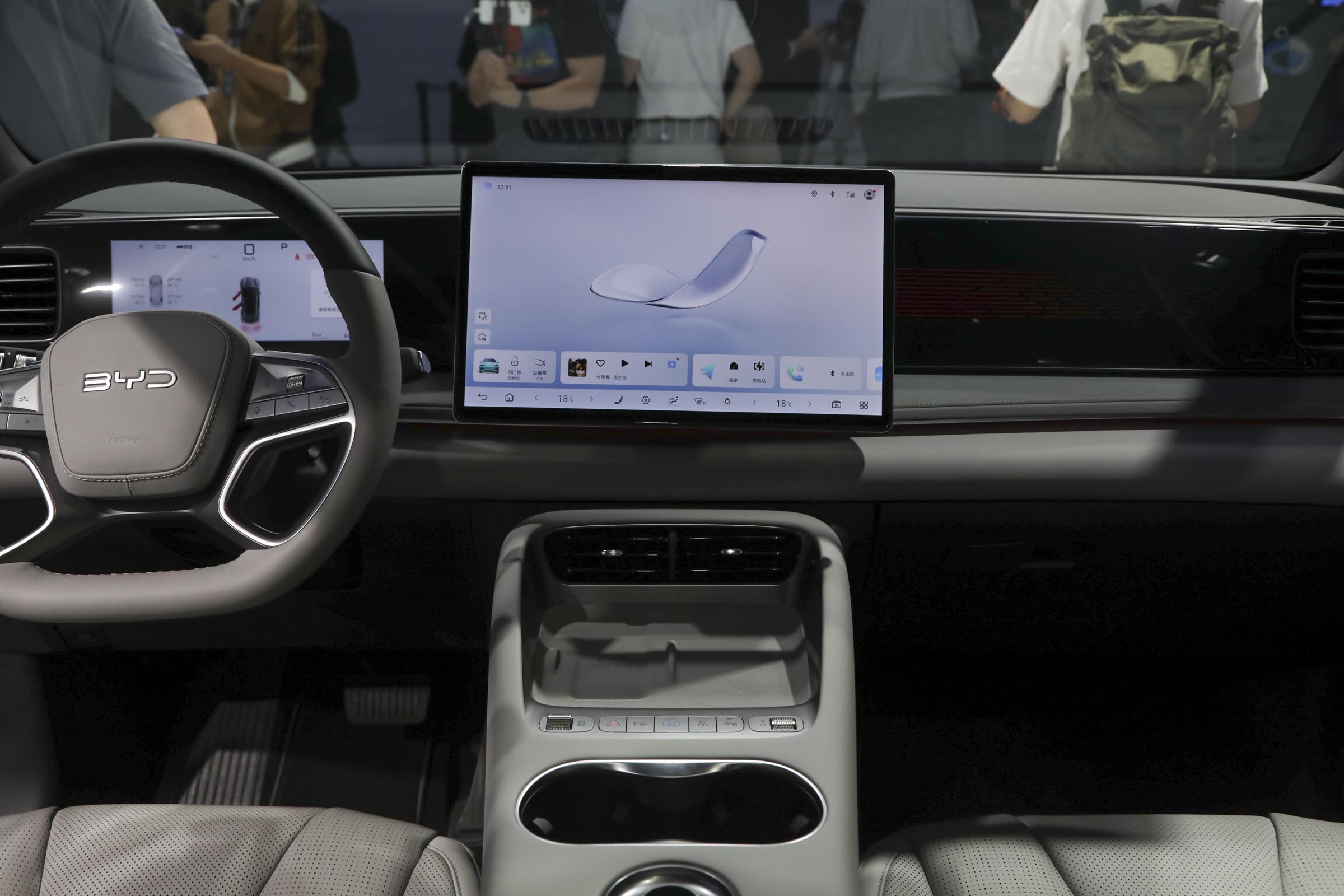 内饰部分,新车同样采用比亚迪家族最新家族风格设计,车内提供海韵灰、曜夜黑两种配色选择,并对在门板和中控台处运用软包材料设计,以此提升质感。配置方面,新车配备嵌入式设计的10.25英寸全液晶仪表以及15.6英寸悬浮式中控屏,搭载智能座舱高阶版-DiLink 100。此外,新车还配备四辐造型方向盘、应用怀挡式换挡机构、手机无线充电以及车载冰箱等配置。官方表示,新车全系标配超100项硬核配置,入门即豪华。另外,新车全系搭载天神之眼-C以及云辇-C底盘,支持高快领航和智能泊车等多项功能。整体来说,无论是科技感还是实用性,车内配备均非常优秀。