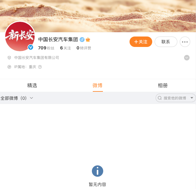 《汽车行业关注》注意到,目前,中国长安汽车集团官方微博已正式注册生效,认证为“中国长安汽车集团有限公司”,IP属地为重庆,但尚未发布任何博文。截至发稿前,该微博账号粉丝数量将近700,长安汽车、阿维塔、深蓝汽车、长安启源、长安凯程、长安汽车引力均已关注这一账号。另外,“中国长安汽车集团有限公司”官方公众号也已上线,目前同样未公开发文。