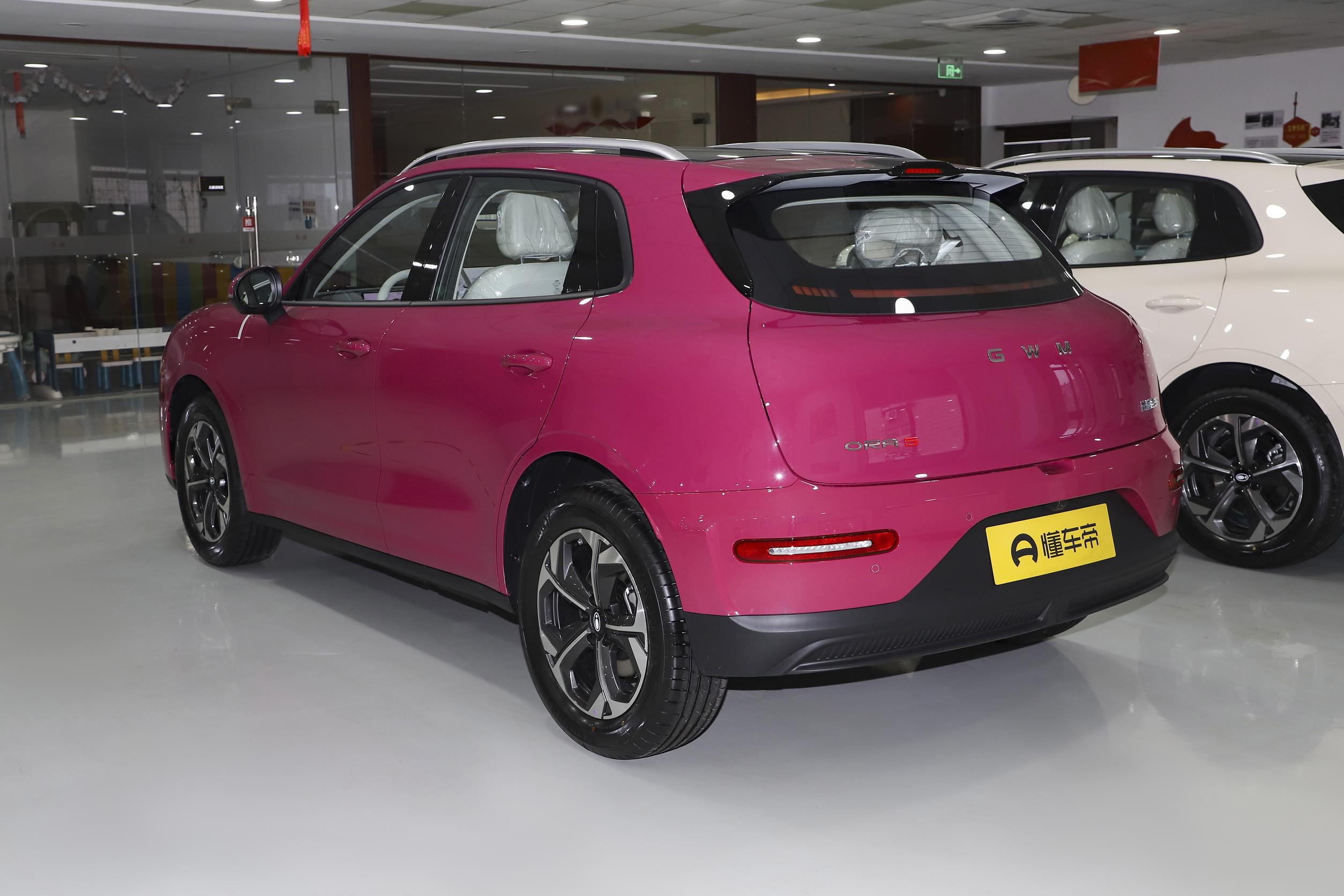 车身侧面,新车采用官方称为“行云流水”的车身曲线,并对B柱进行黑色涂装,搭配车顶行李架、常规造型门把手以及18英寸双色半封闭式轮辋,充电口位于车辆前翼子板位置,整体呈现出较强的运动气息。车身颜色方面,新车提供极光绿、白崖白、塞纳灰、沙洲米、赛里木湖蓝、林芝红共6种颜色供消费者选择,满足不同消费群体的审美需求。车尾部分,新车采用上窄下宽的造型,带来低趴的视觉效果,尾灯采用与好猫相似的“地平线”尾灯组设计,配备车顶扰流板并内嵌高位刹车灯组,尾门中央处悬挂“GWM”车标,左侧为“欧拉猫”,右侧为“长城汽车”,视觉辨识度较高。