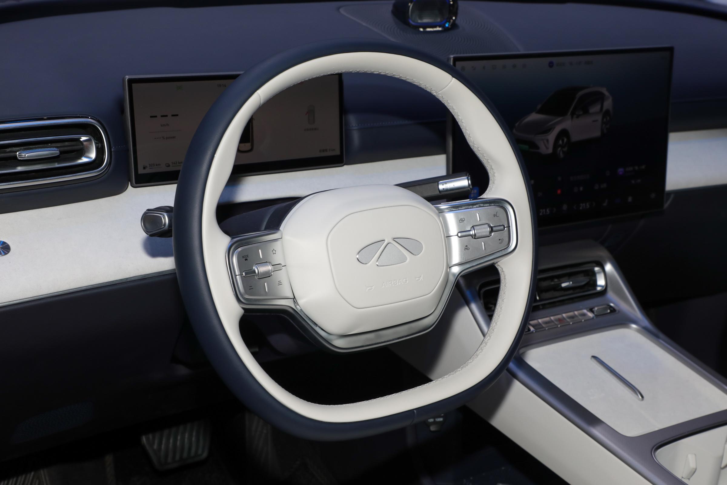 内饰方面,新车车内布局简洁,车内配备全液晶仪表盘和双色双辐式多功能方向盘,中控台中间搭配17.3英寸的2.5K高清IMAX屏幕,通道区域配备乐乐双出风口无线充电面板,整体科技感十足。辅助驾驶方面,新车配备猎鹰700+智能辅助驾驶系统、地平线征程6P辅助驾驶芯片和27个硬件传感器,芯片算力达到560TOPS。
