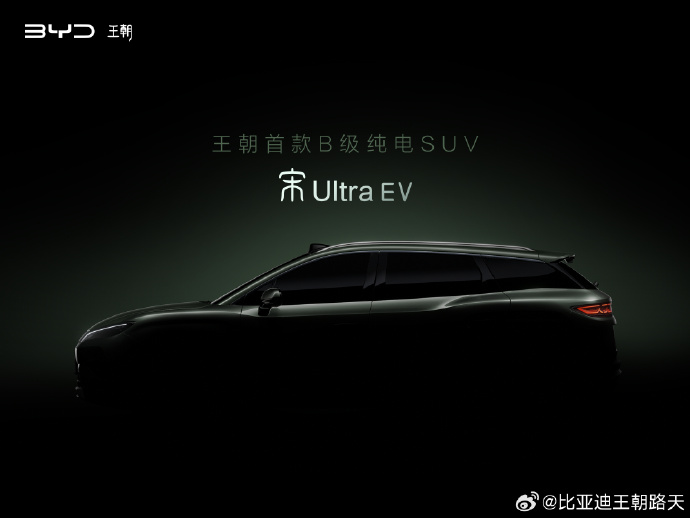 2月5日,比亚迪王朝网销售事业部总经理路天在微博官宣,王朝首款B级纯电SUV——宋Ultra EV来了,并发布了关于新车的预告图。比亚迪宋Ultra EV已于1月8日在工信部完成新车申报。结合申报图以及最新预告图来看,新车外观设计风格与宋L DM类似,整体尺寸比宋L DM-i更大,预计将会有更宽敞的驾乘空间,动力上搭载高/低功率两种单电机,匹配磷酸铁锂电池组。