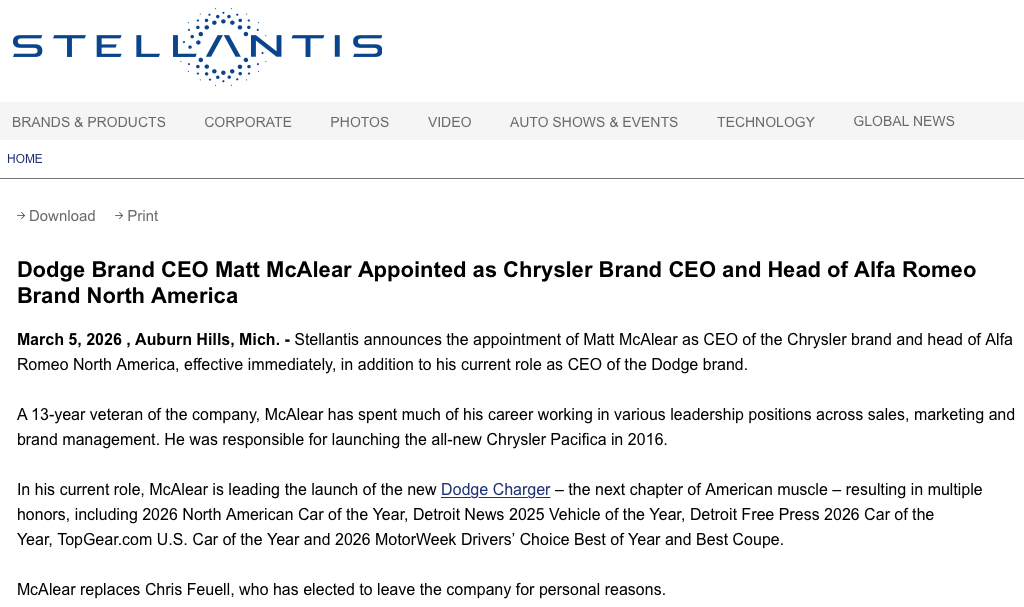 当地时间3月5日,欧洲汽车制造巨头Stellantis集团宣布,因个人原因,原克莱斯勒品牌首席执行官ChrisFeuell选择离职,MattMcAlear将接替其职务,担任克莱斯勒品牌首席执行官,同时兼任阿尔法·罗密欧北美负责人,该任命即刻生效,此项任命将与其现任道奇品牌首席执行官职务并行,这也意味MattMcAlear成为Stellantis集团内同时主导三大品牌的高管。资料显示,MattMcA...
