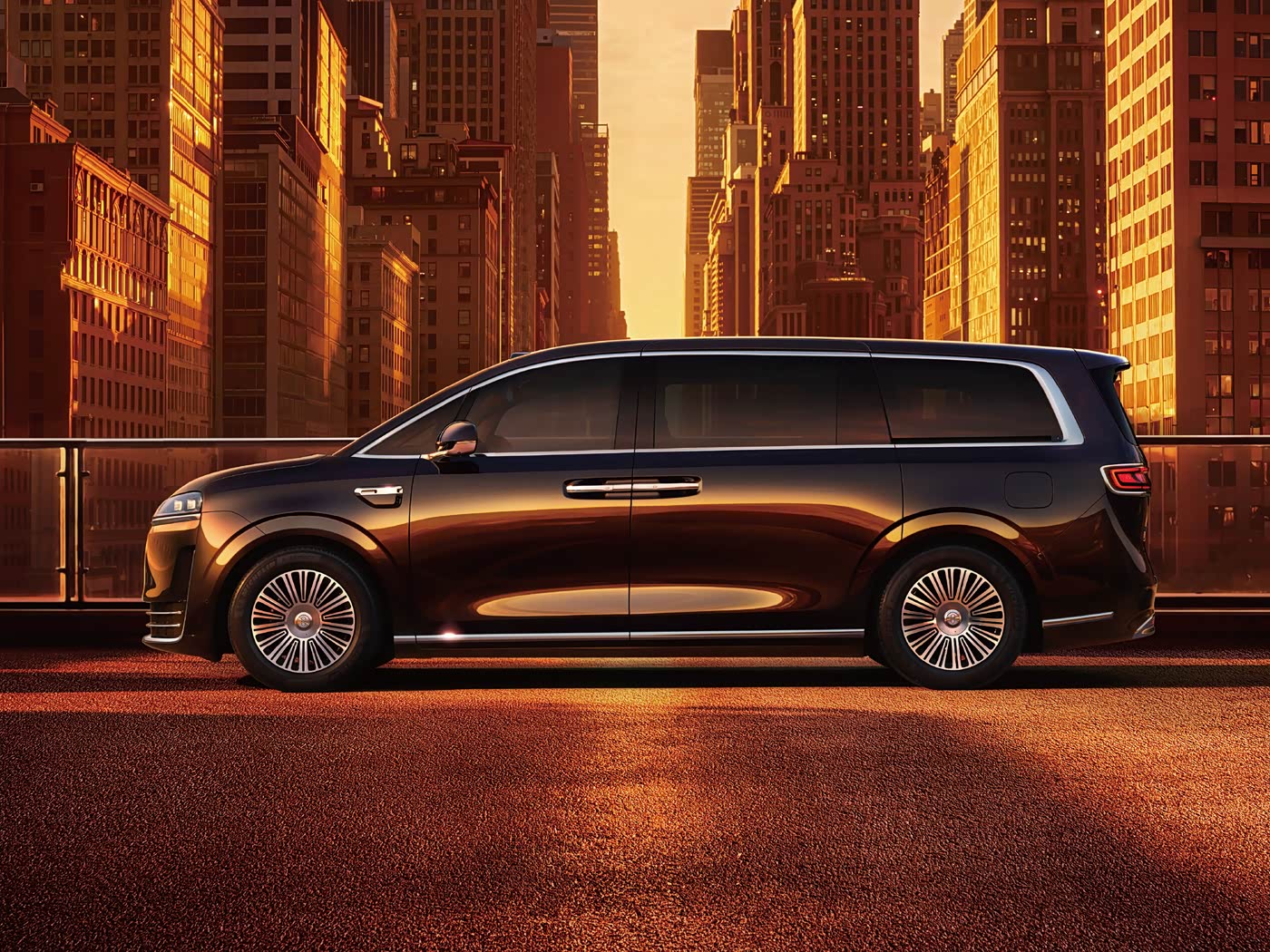 车身侧面,车辆采用标准的MPV车身比例,车顶线条平直贯穿到底,最大化保障车内头部空间,车门采用双侧电滑门设计,支多种开启方式。智界V9采用诸多的镀铬元素加以修饰,包括侧窗装饰条、外门把手、外后视镜支架、侧视摄像头装饰罩以及侧裙等处,第二排配备隐私玻璃,兼顾私密性。车尾部分,新车配备贯穿式尾灯,并在尾灯轮廓以及后包围底部应用贯穿式镀铬饰条,车顶上方配备大尺寸扰流板,后风挡玻璃上方还配有纤细且较长的高位刹车灯,整体造型四平八稳,符合高端MPV的定位。尺寸方面,新车长宽高分别为5359/2009/1879mm,轴距3250mm。
